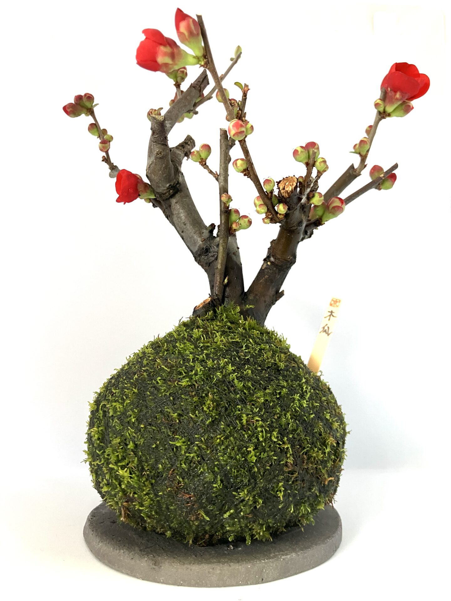 ころんとした苔玉から伸びる力強い枝。